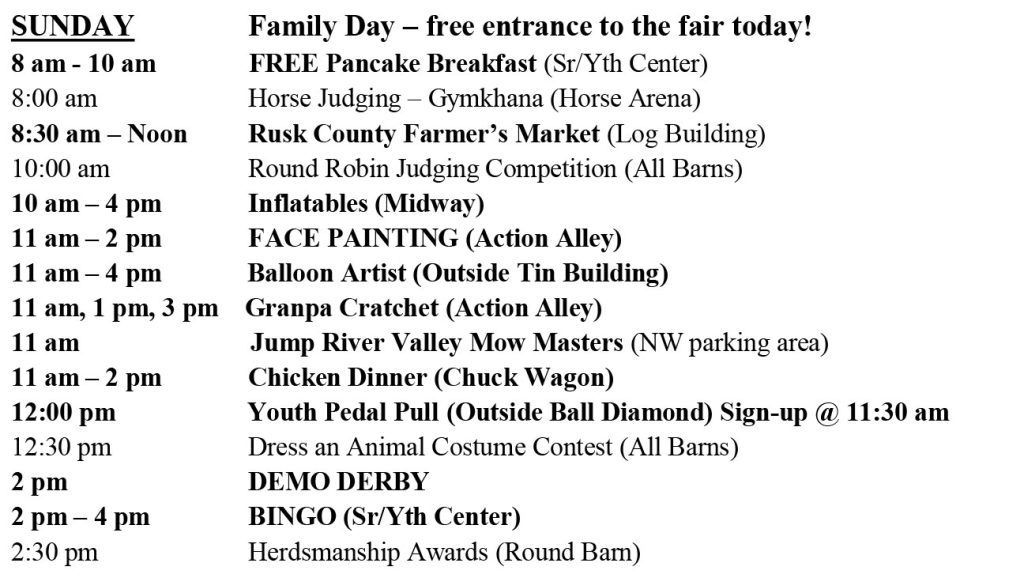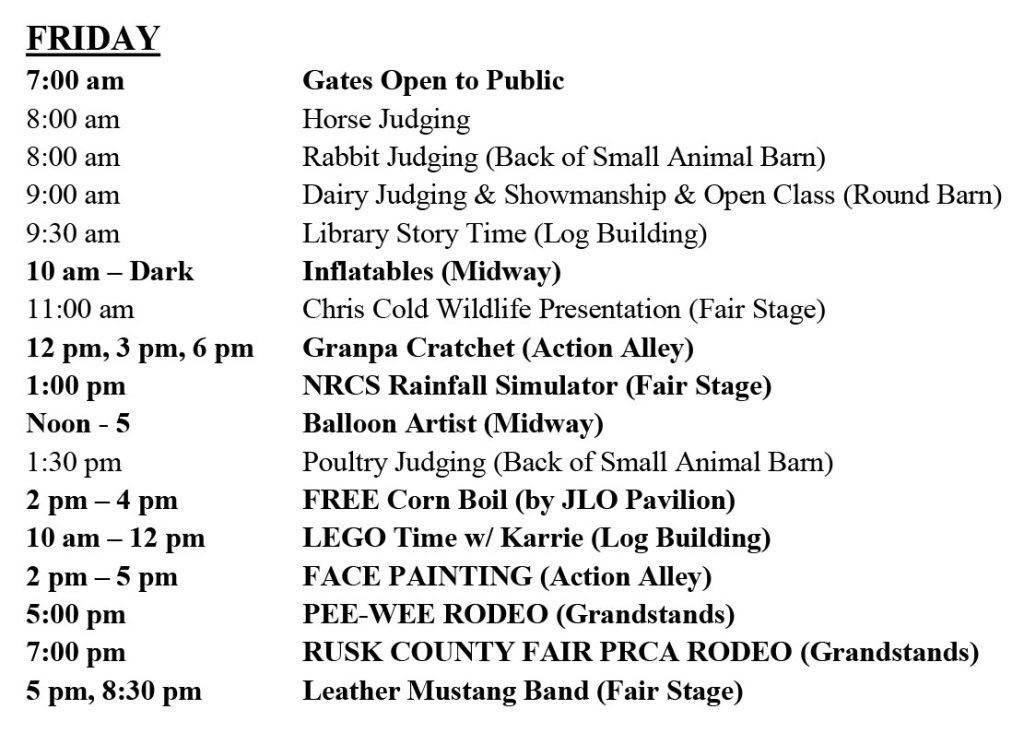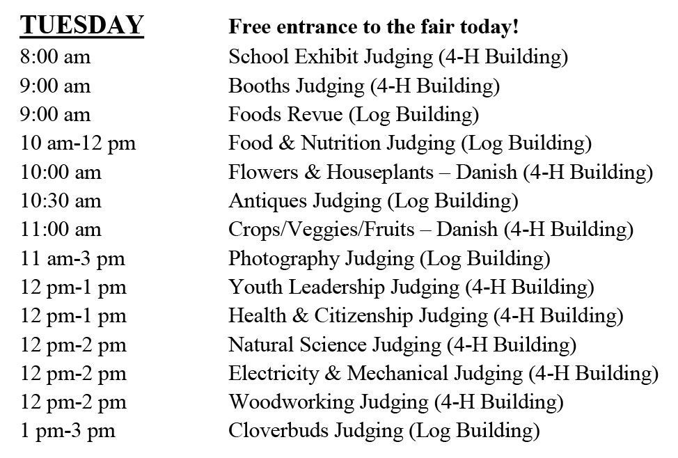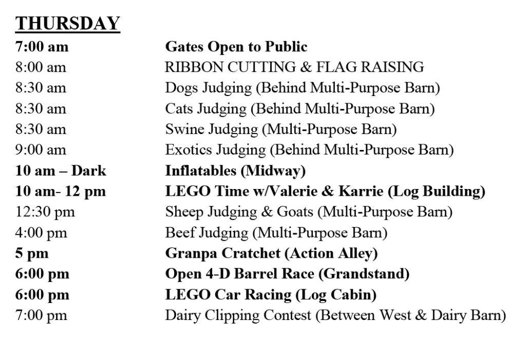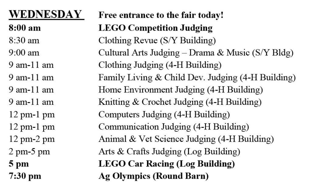 Events outside of fair schedule: